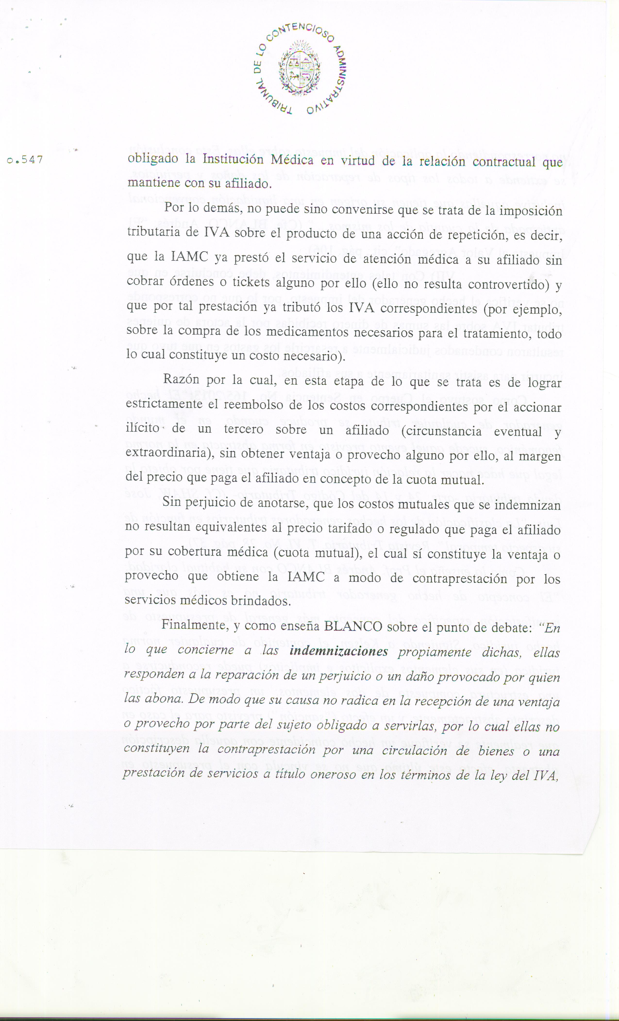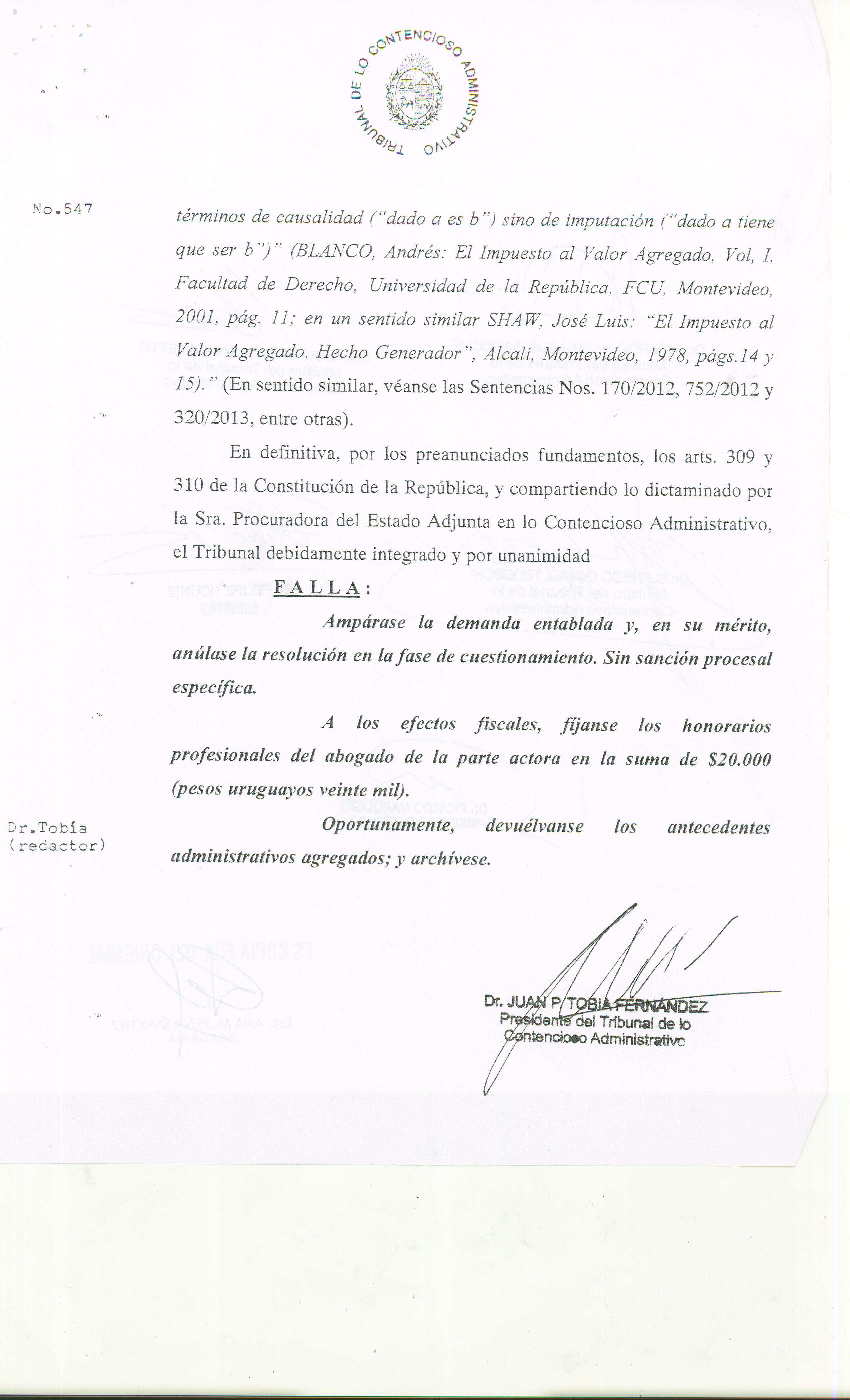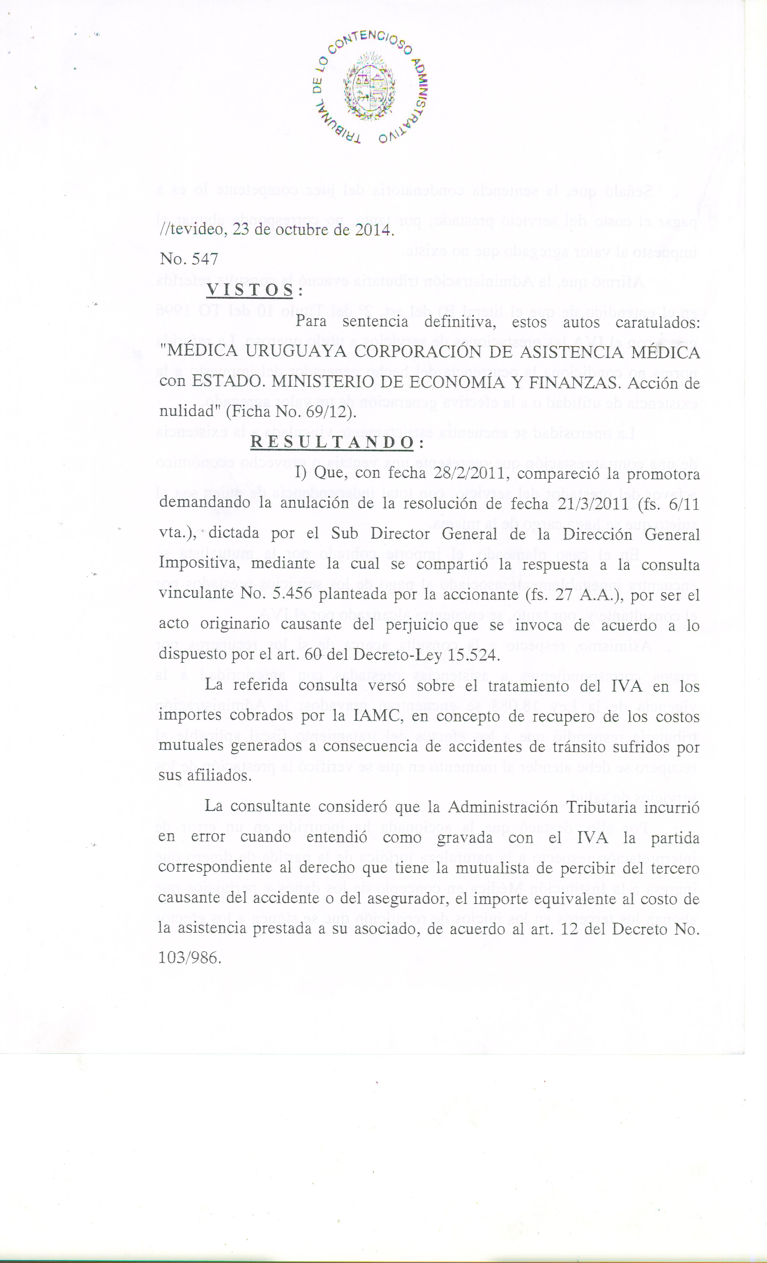 Nuestro equipo de profesionales obtuvo el pasado 23 de octubre la Sentencia Nº 547/2014, dictada por el Tribunal de lo Contencioso Administrativo.