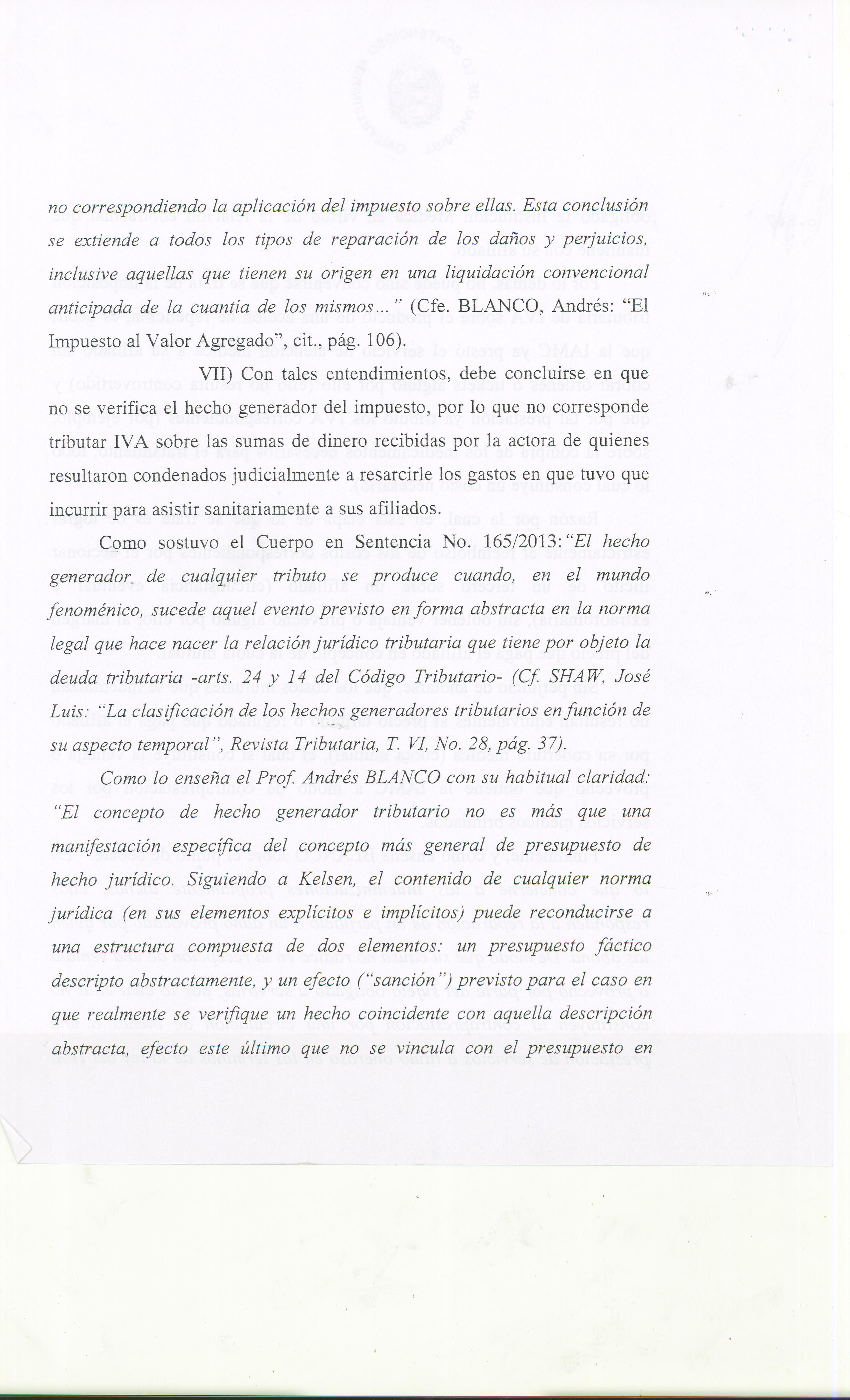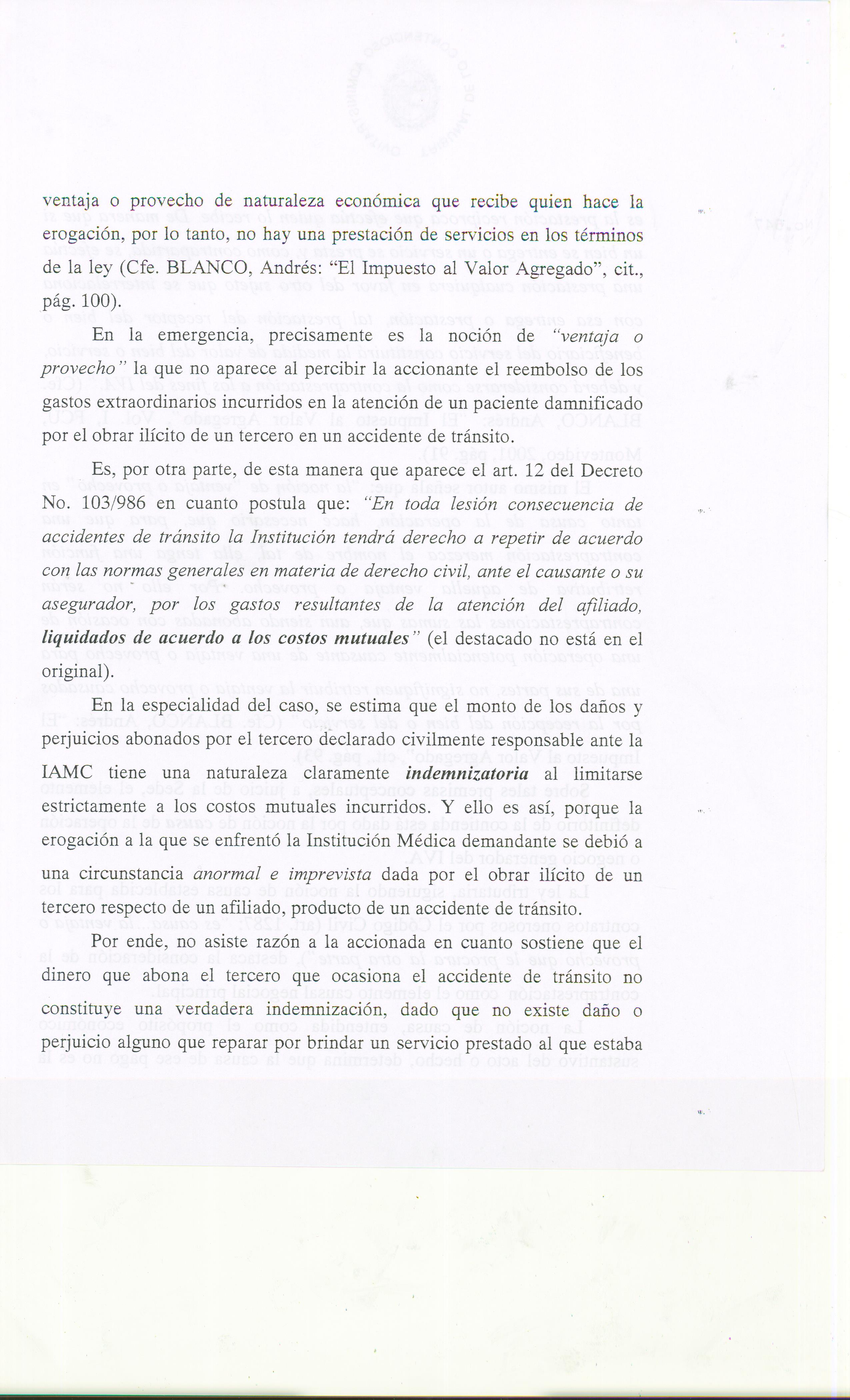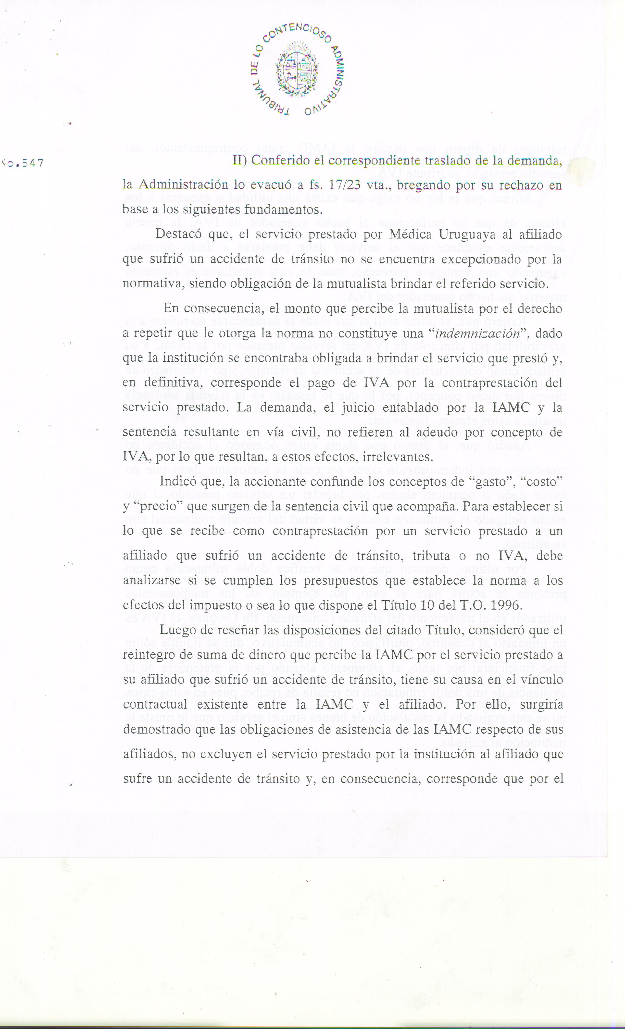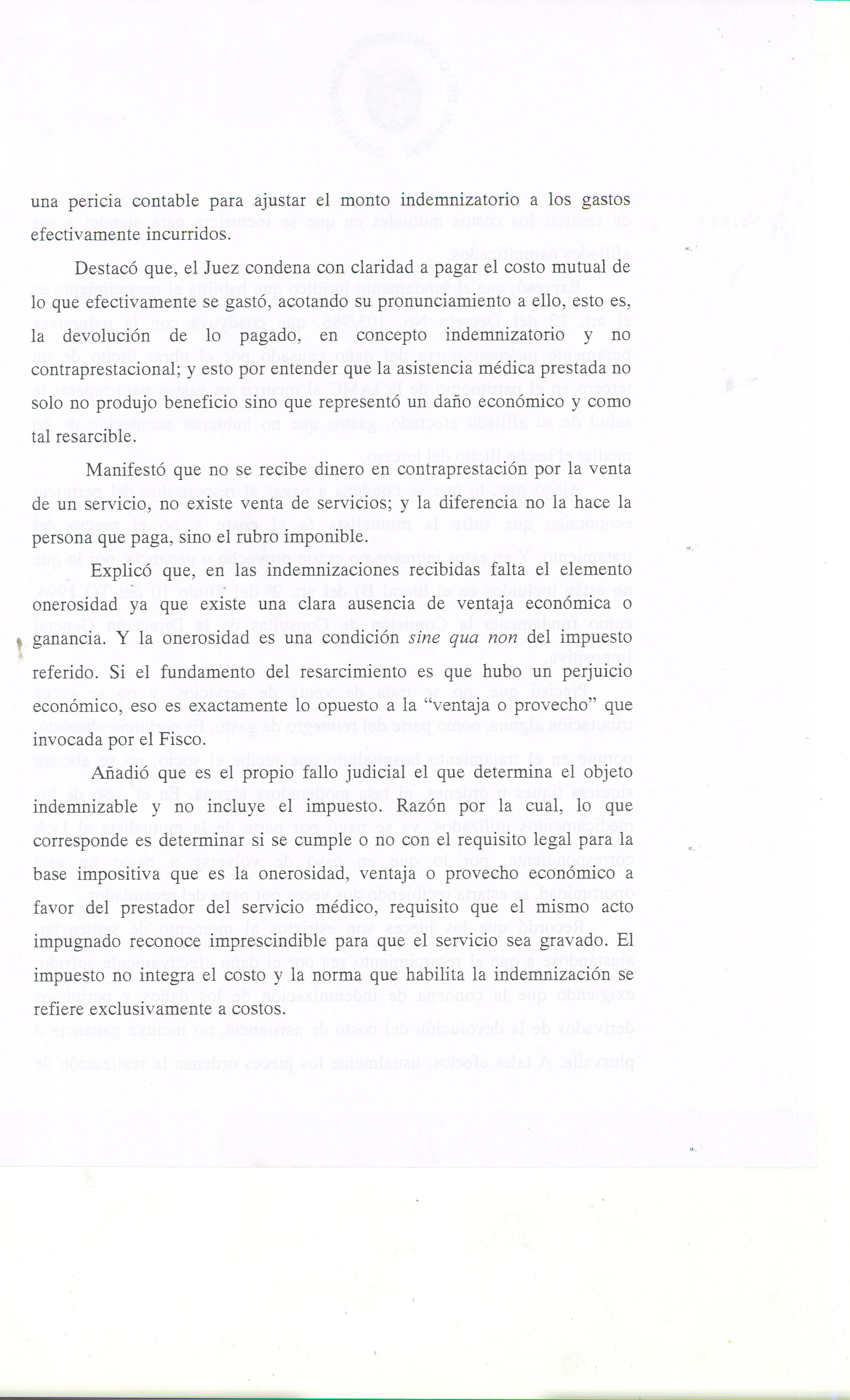 La misma constituye la primera en su especie y determinó que la IAMC actora no debía al Organismo Recaudador el pago del I.V.A por los Recuperos Mutuales, ya que la indemnización que perciben las Mutualistas por los costos que insumen los accidentes de tránsito responsabilidad de terceros no configura el hecho generador del impuesto.